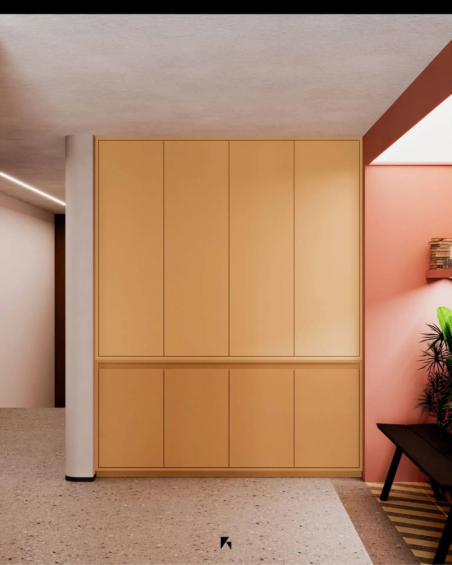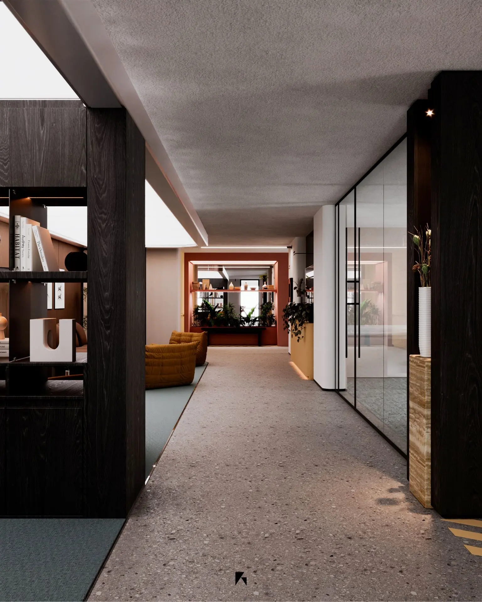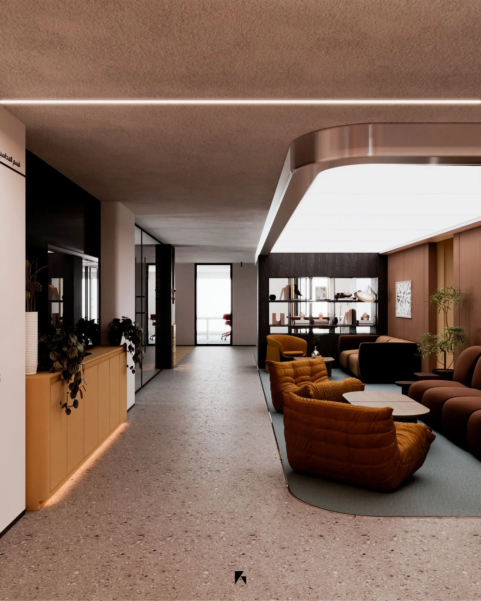 This modern office design, located in the heart of Qatif, Saudi Arabia, spans an area of 240 m². The space is a dynamic blend of contemporary style and functionality, with an emphasis on strong, bold colors that create a vibrant, professional atmosphere. The layout is optimized for both collaboration and individual focus, featuring open workstations, private offices, and dedicated meeting rooms. Carefully chosen materials and finishes enhance the modern aesthetic, while innovative lighting solutions ensure a well-lit and comfortable environment. The design reflects a forward-thinking approach, making it a perfect fit for businesses seeking a unique and inspiring workspace.
